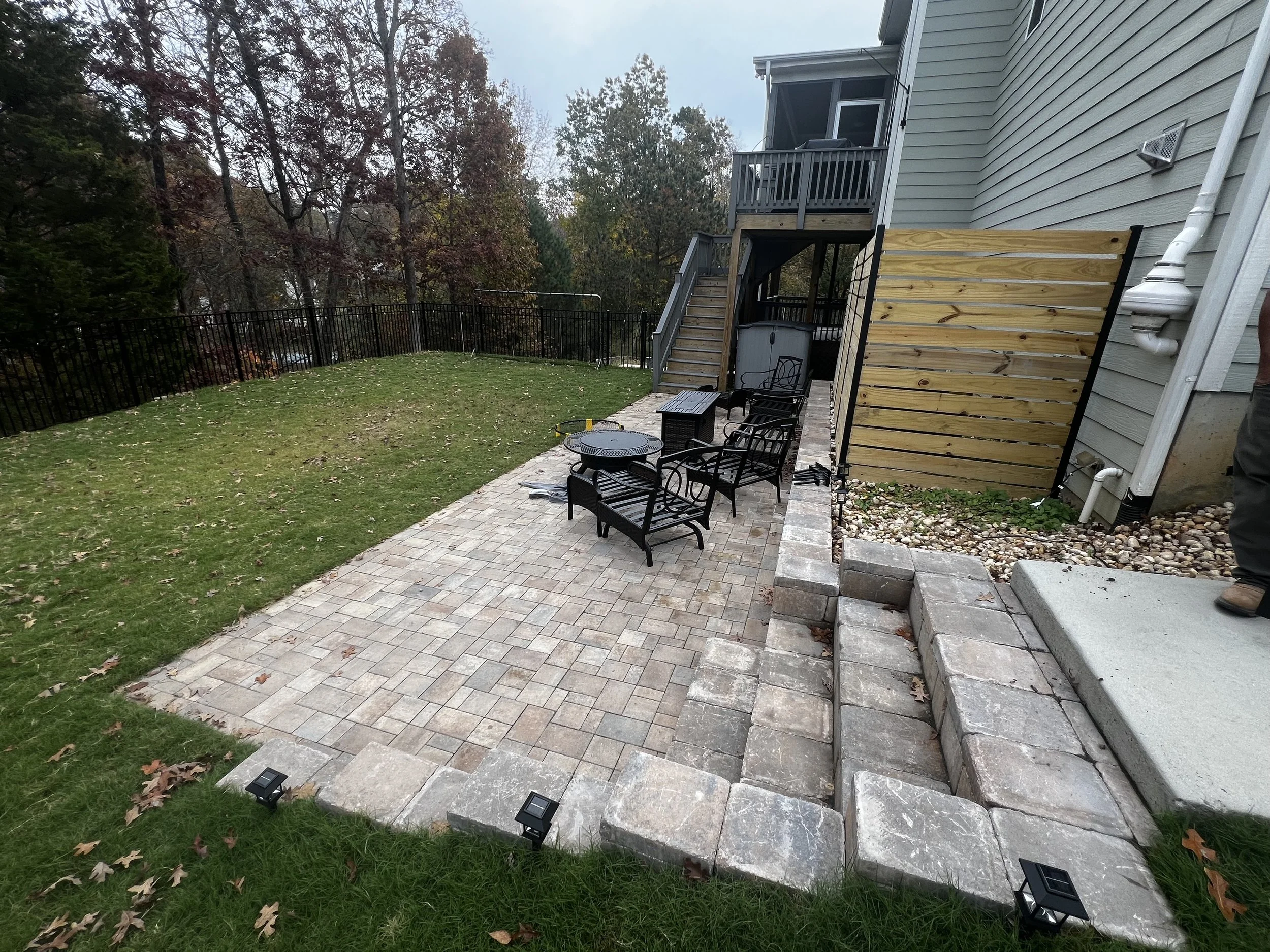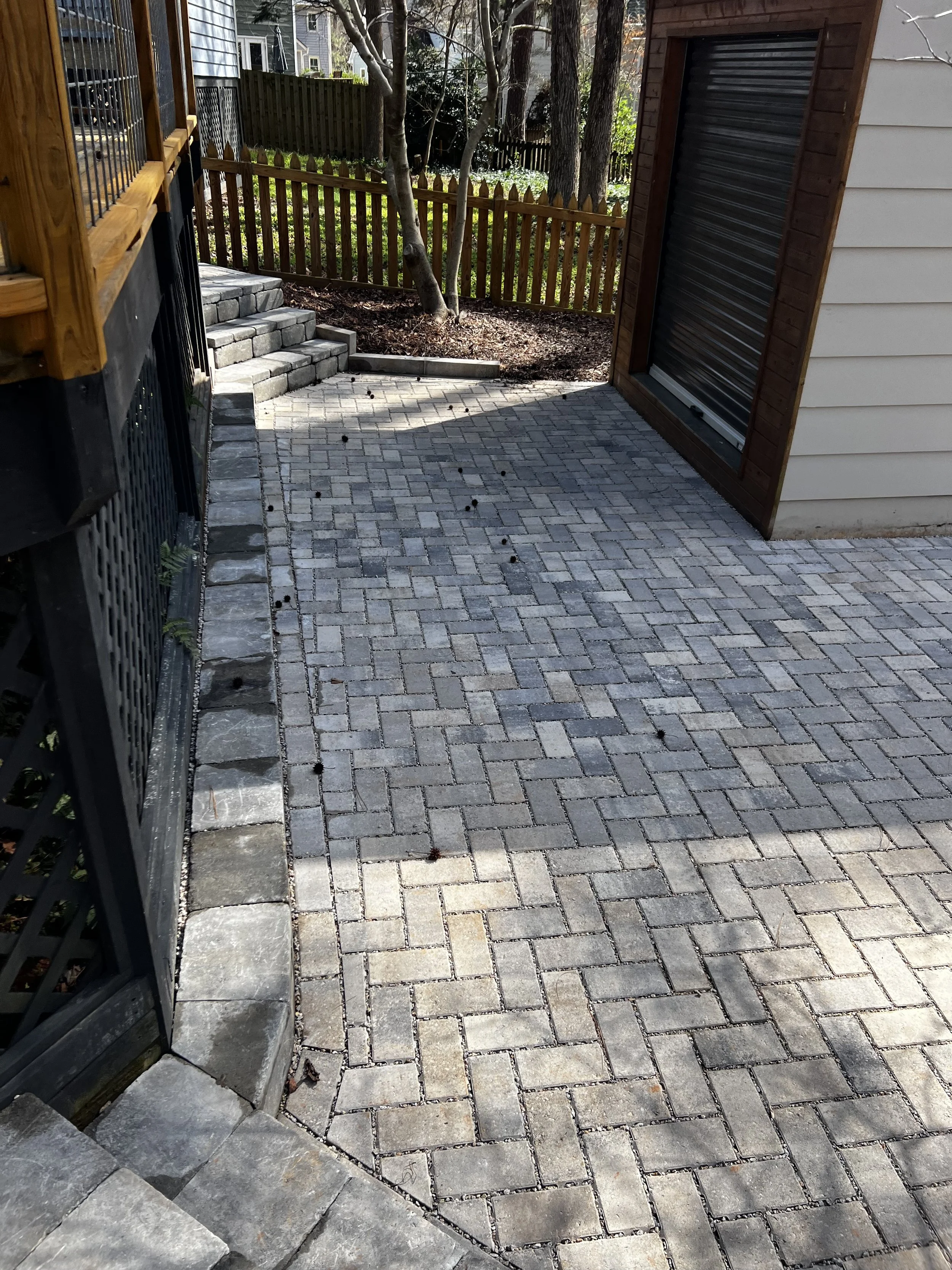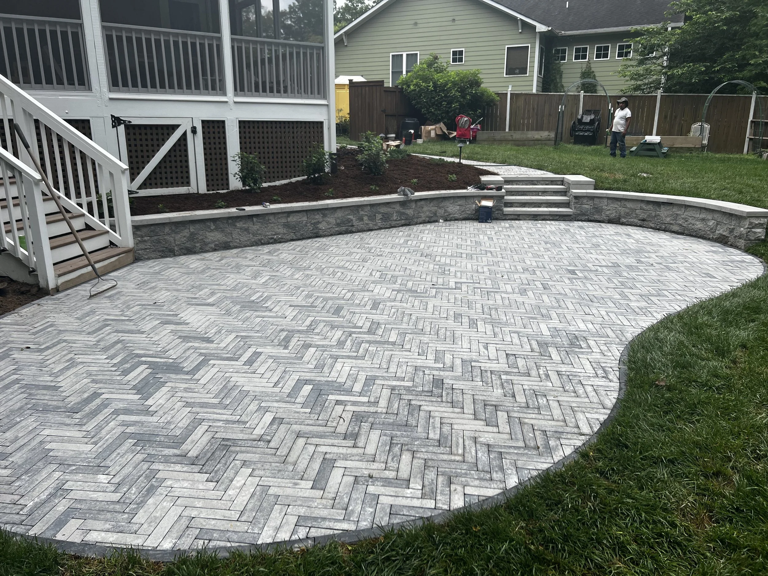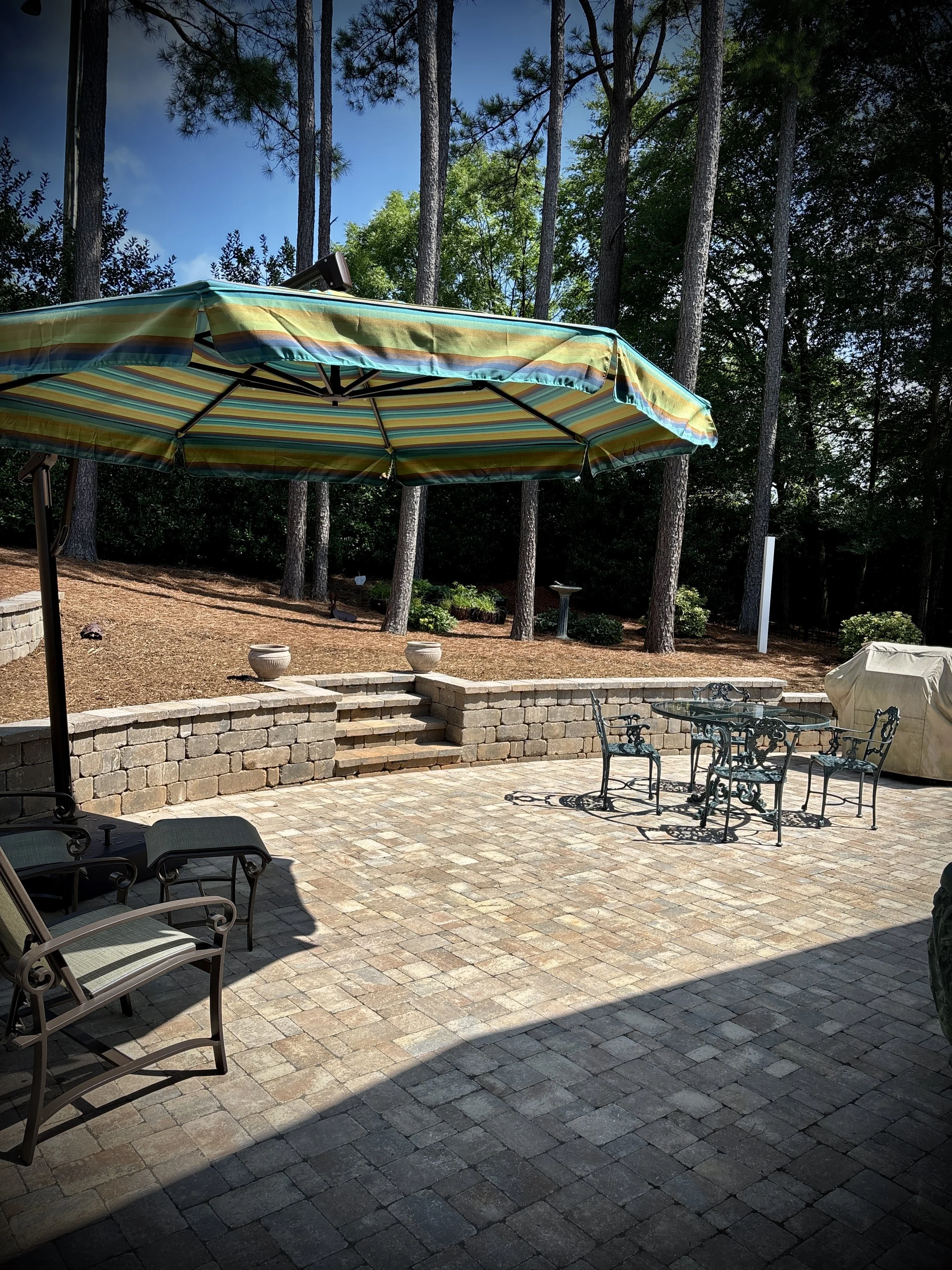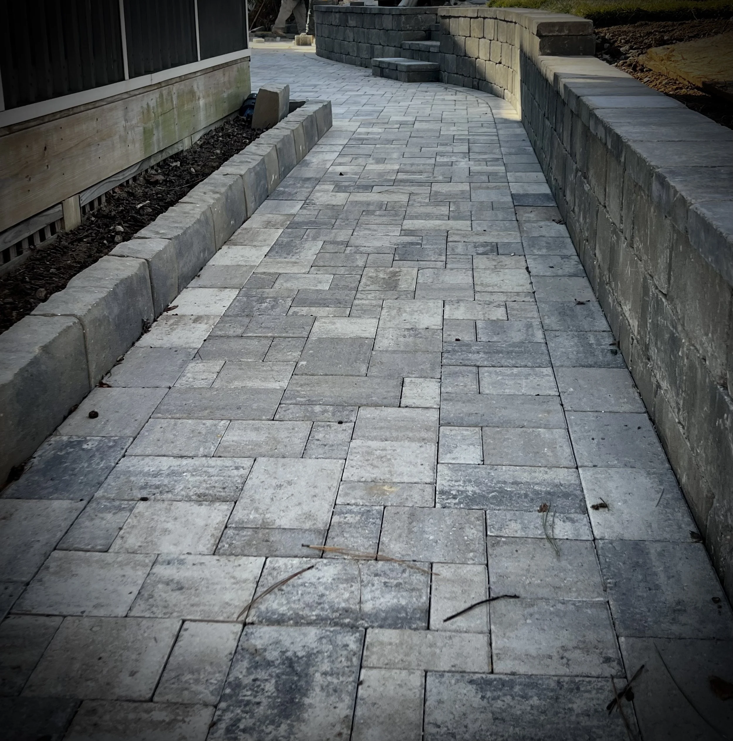 Final product well supported by compaction of bases. Outdoor Kitchen and Gas Fire Pit Install using Belgard and Techo Bloc Products