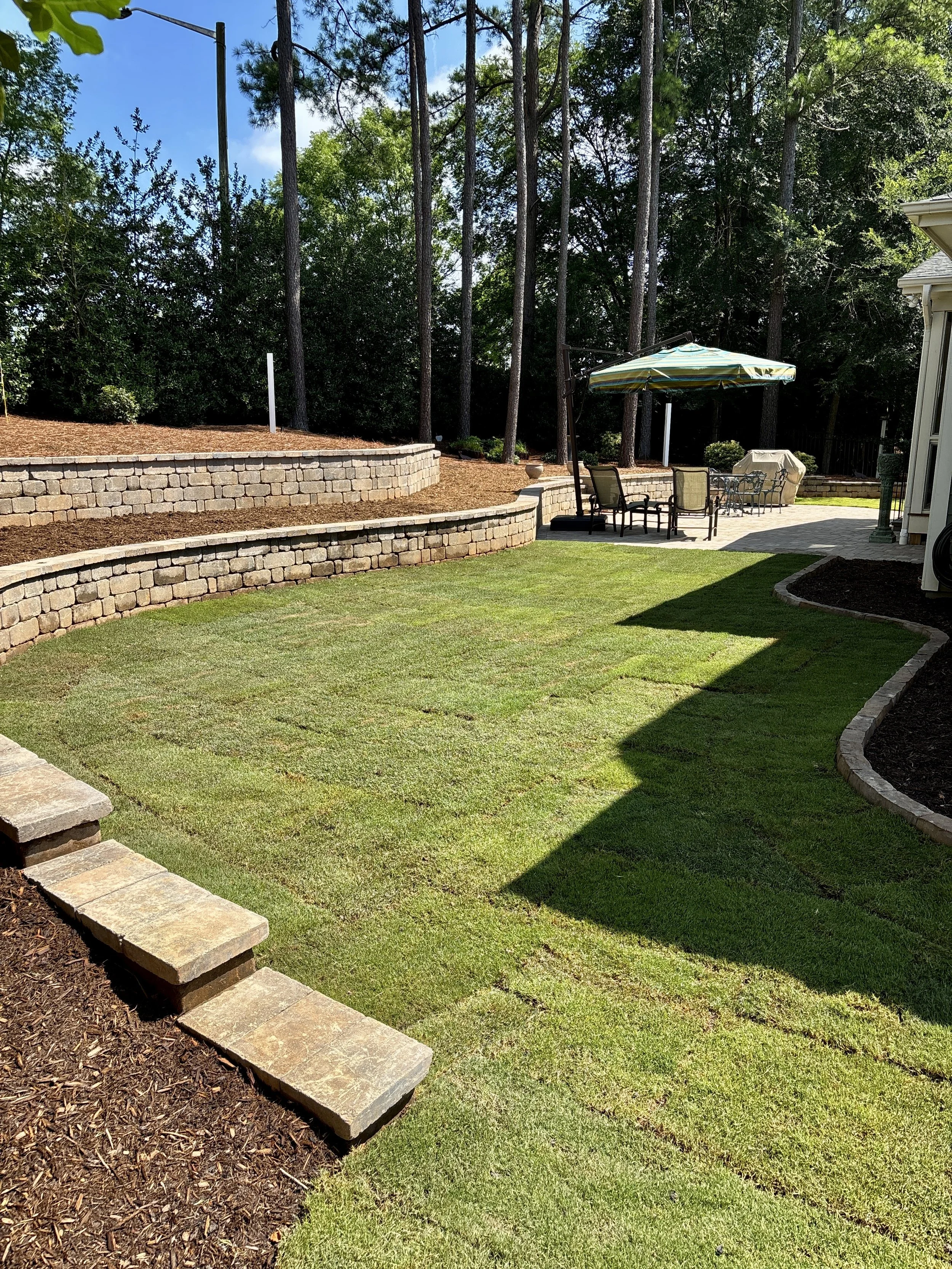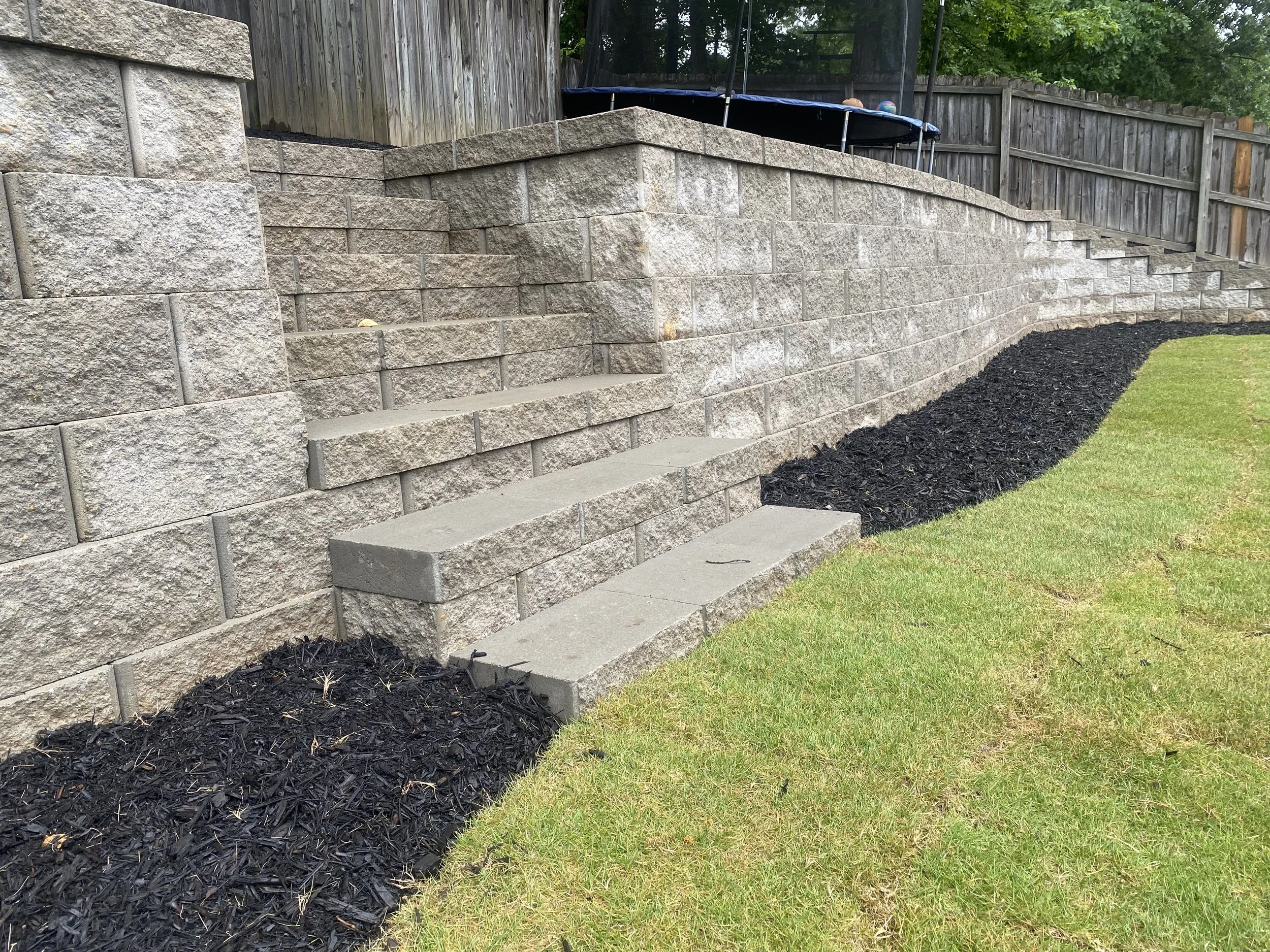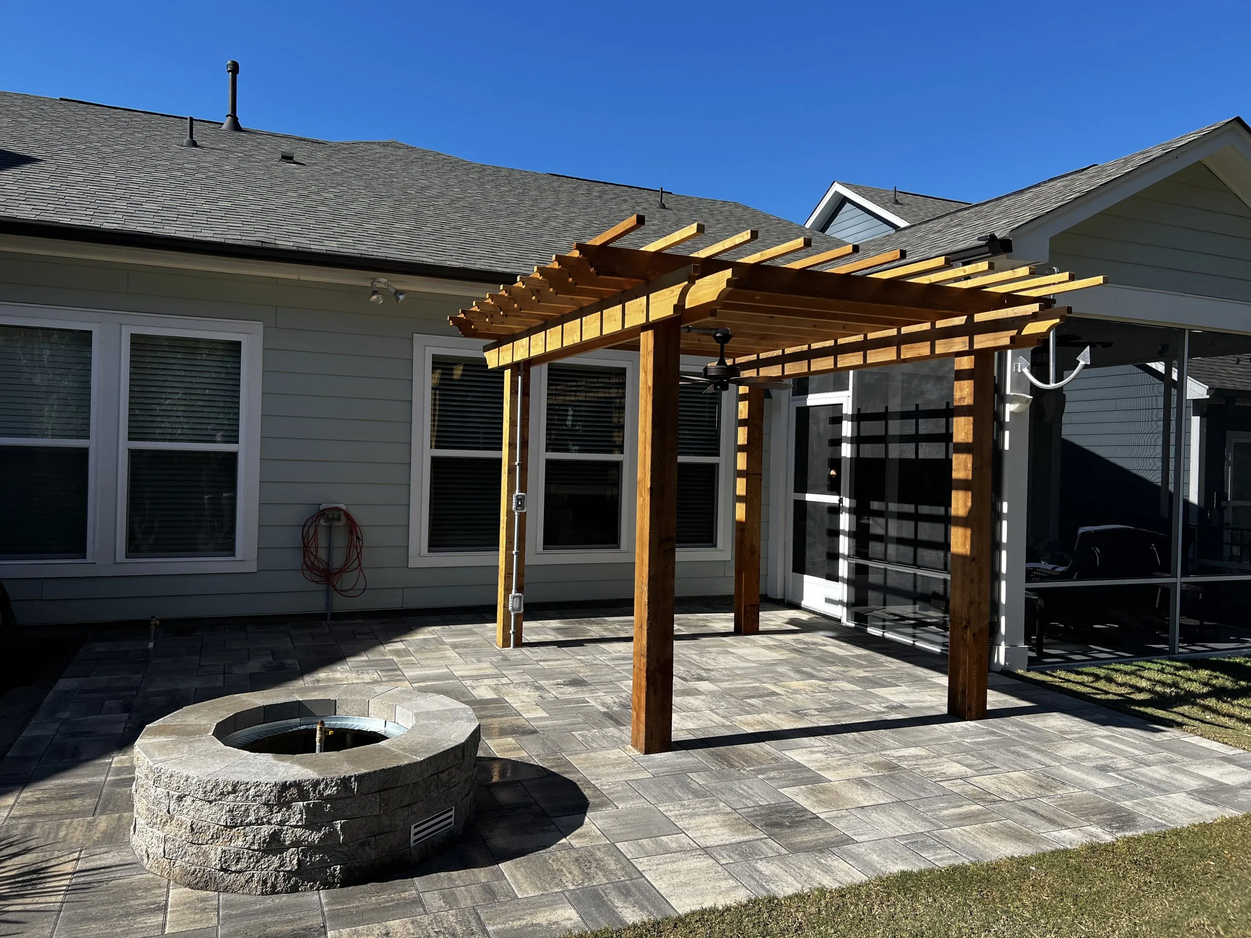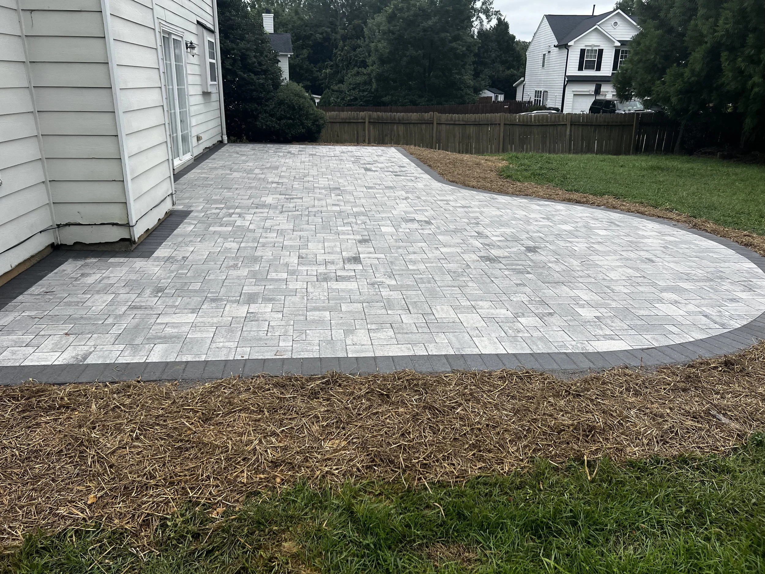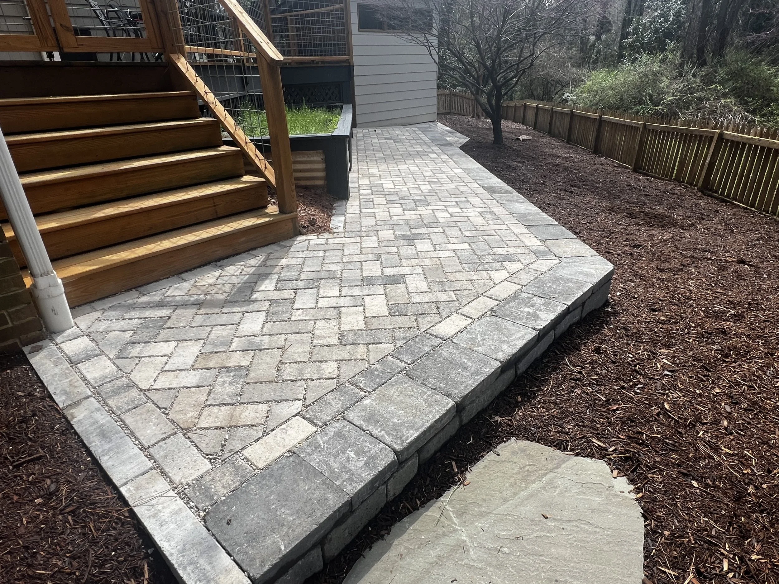 Final product well supported by compaction of bases. Outdoor Kitchen and Gas Fire Pit Install using Belgard and Techo Bloc Products